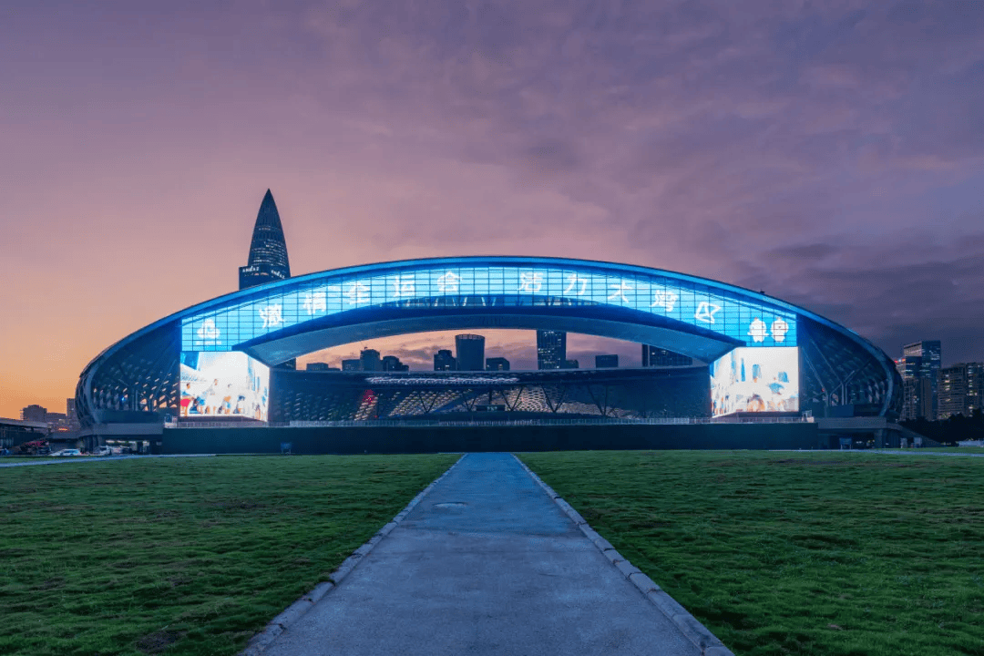在第十五届全国运动会的核心场馆——深圳湾体育中心(“春茧”),洲明科技打造了一项震撼行业的视觉工程:覆盖场馆海之门立面、面积达2500平方米的全球最大全息透明屏。该项目采用洲明自主研发的Udesign SV系列产品,集成Micro LED与MIP等尖端技术,实现了显示效果与建筑美学的革命性融合。屏幕拥有超过90%的通透率与仅约2毫米的极致厚度,白天近乎隐形,完整保留了“春茧”原有的建筑美学与室内采光;夜晚则可化身为亮度高达7000尼特的巨型画布,呈现极具冲击力的裸眼3D视觉盛宴。