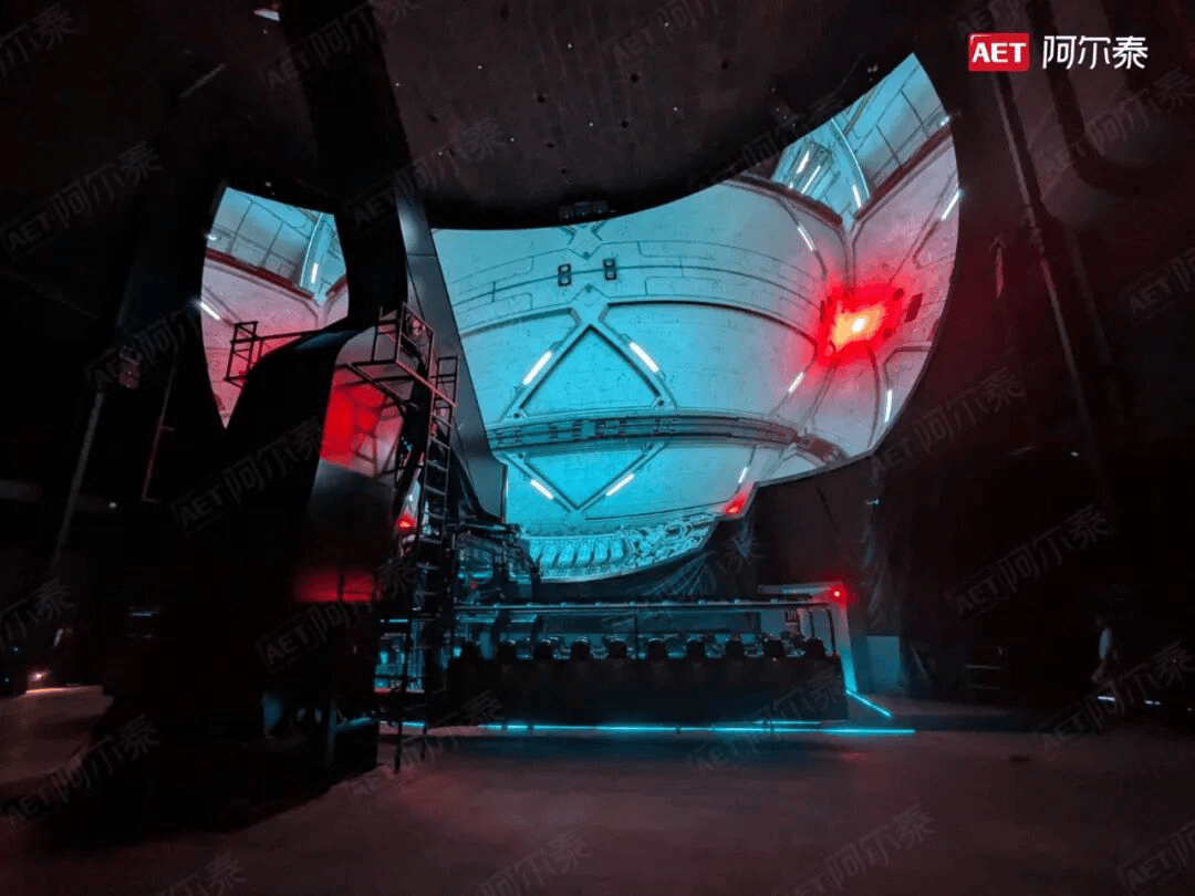2025年,AET阿尔泰为印度班加罗尔的Wonderla乐园打造的“星际探险”项目,树立了海外文旅沉浸体验的新标杆。该项目核心是一块宽22米、高15米、总面积达377.76平方米的沉浸式曲面LED巨幕,这是印度迄今规模最大的同类显示系统。屏幕采用AET自主研发的P2.5 QCOB显示技术,成功实现8K超高清分辨率,凭借其出色的对比度、宽色域与广视角一致性,为观众营造了无视觉死角的包裹式太空探索场景。